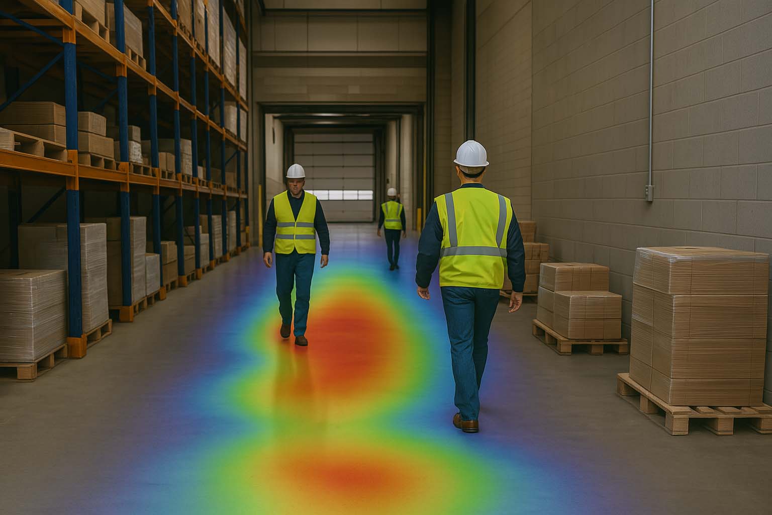 Solution: airis:net analyzes video feeds to create real-time heatmaps of worker movement patterns, highlighting congested or frequently used paths and potential conflict zones.